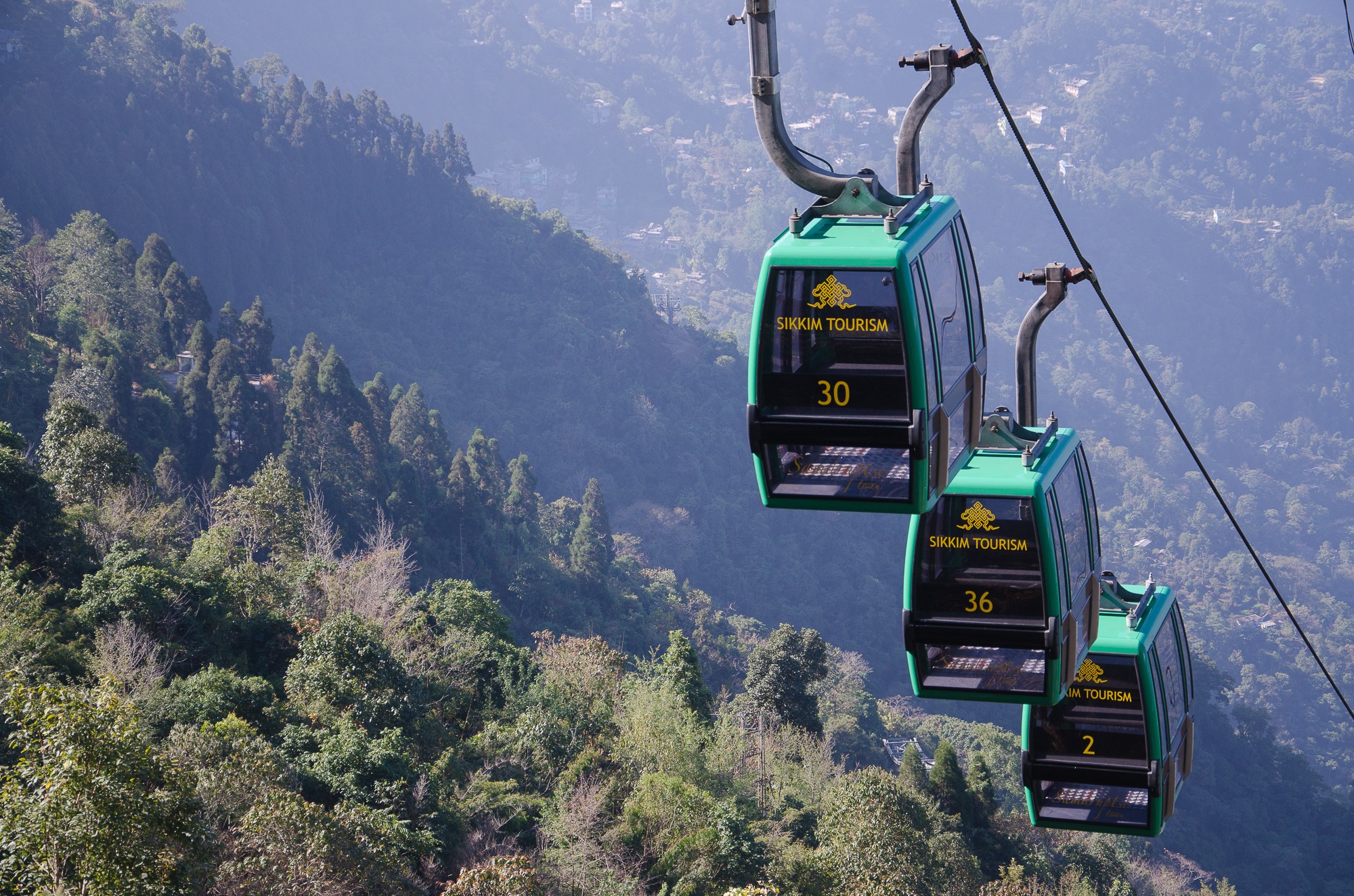 The ropeway in Namchi has been designed, constructed and operated by Damodar Ropeway and Infra Ltd. The ropeway is a monocable fixed grip pulsated one with a total of 12 four seater cabins. These cabins have been fixed on the rope line in four groups with each group consisting of three cabins. The ropeway has been built as per state of art technology following relevant Indian and International standards.