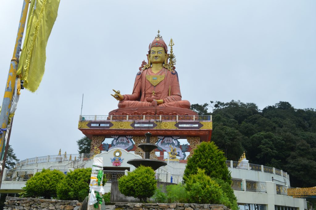 Samdruptse Hill; the 'wish fulfilling hill' is just 5 km away from Namchi, situated at an altitude of 2134 m (7000 ft). This epic hill is ornamented with a giant statue of the Guru Padmasambhava (Guru Rinpoche); the patron saint of Sikkim who has been showering its blessings since more than 1,200 years. It is a 45 m tall statue, overlooking the whole city, and is gilded with gold that glitters when the sunlight falls over it. The hill offers the vista of the magnificent Mt. Kangchenjunga amongst the richly forested hills under the blue painted sky.